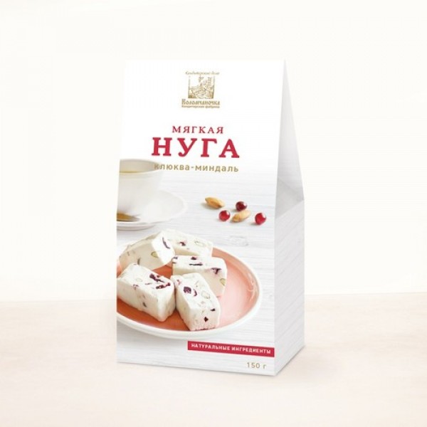 Состав: cахар-песок, патока, миндаль, клюква сушеная, сухой яичный белок, молоко сухое цельное, ароматизатор натуральный. Возможно наличие незначительного количества арахиса.
