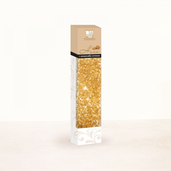 Состав: сахар-песок, патока, миндаль жареный, крошка миндального печенья, белок яичный сухой, мука в/с, ядро косточек абрикосов, сахарная пудра, ароматизаторы идентичные натуральным.