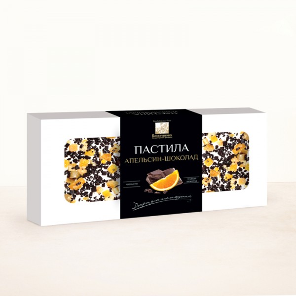 Состав: сахар-песок, пюре яблочное, патока, белок яичный сухой, концентрированный апельсиновый сок, посыпка "Шоколадная крошка", цукаты из апельсиновой цедры, сахарная пудра, концентрированный лимонный сок, кислота лимонная, ароматизаторы, идентичные натуральным.