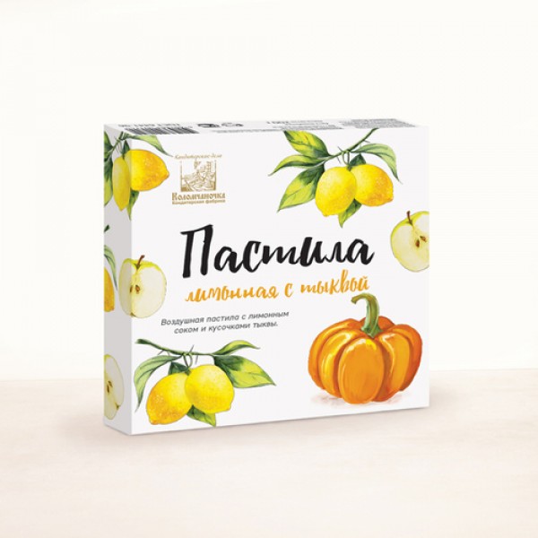Состав: сахар-песок, патока, пюре яблочное, сахарная пудра, сушеная тыква, сухой яичный белок, пектин, концентрированный сок лимона, кислота лимонная.