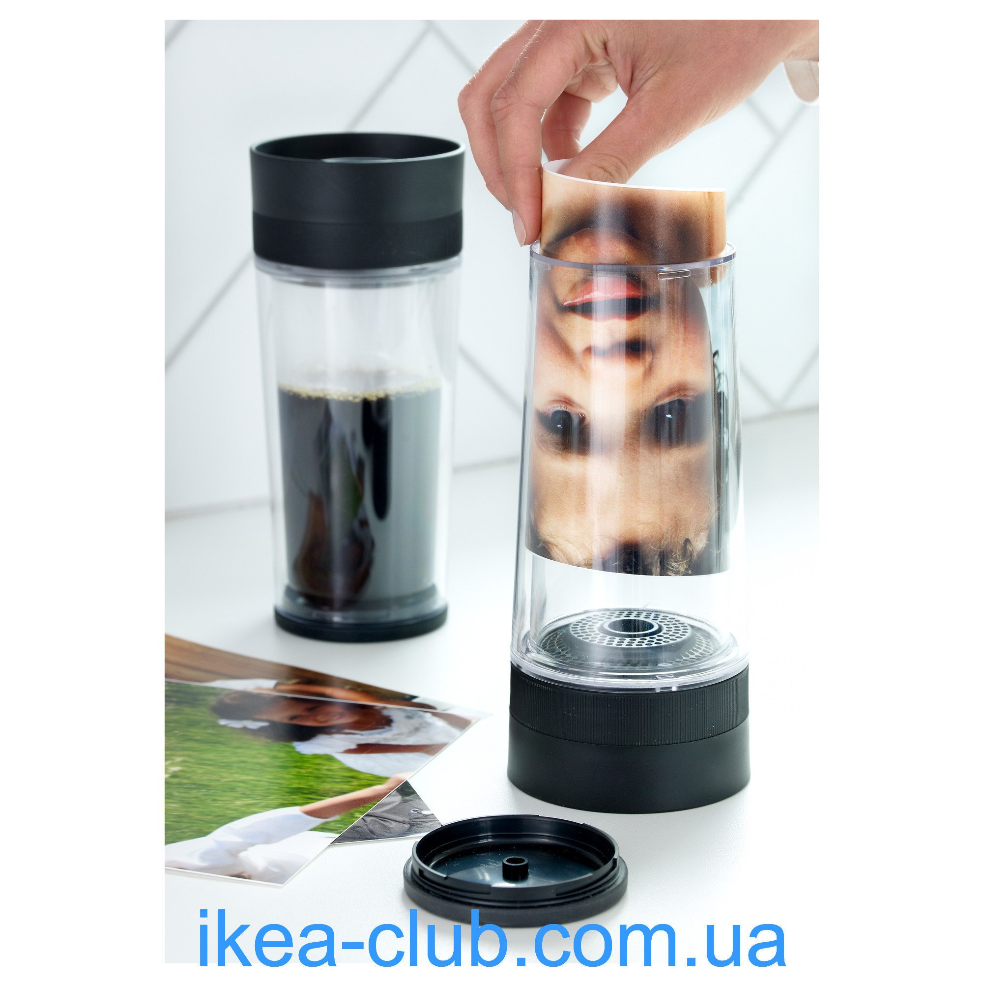 Создайте индивидуальный дизайн кружки, вставив любимую фотографию или рисунок. Благодаря двойной теплоизоляции содержимое не остывает, а сама кружка остается холодной. Съемный фильтр позволяет использовать кружку для кофе и чая.