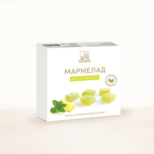Состав: сахар-песок, патока, пектин, концентрированный лимонный сок, кислота лимонная, ароматизатор натуральный мятный.