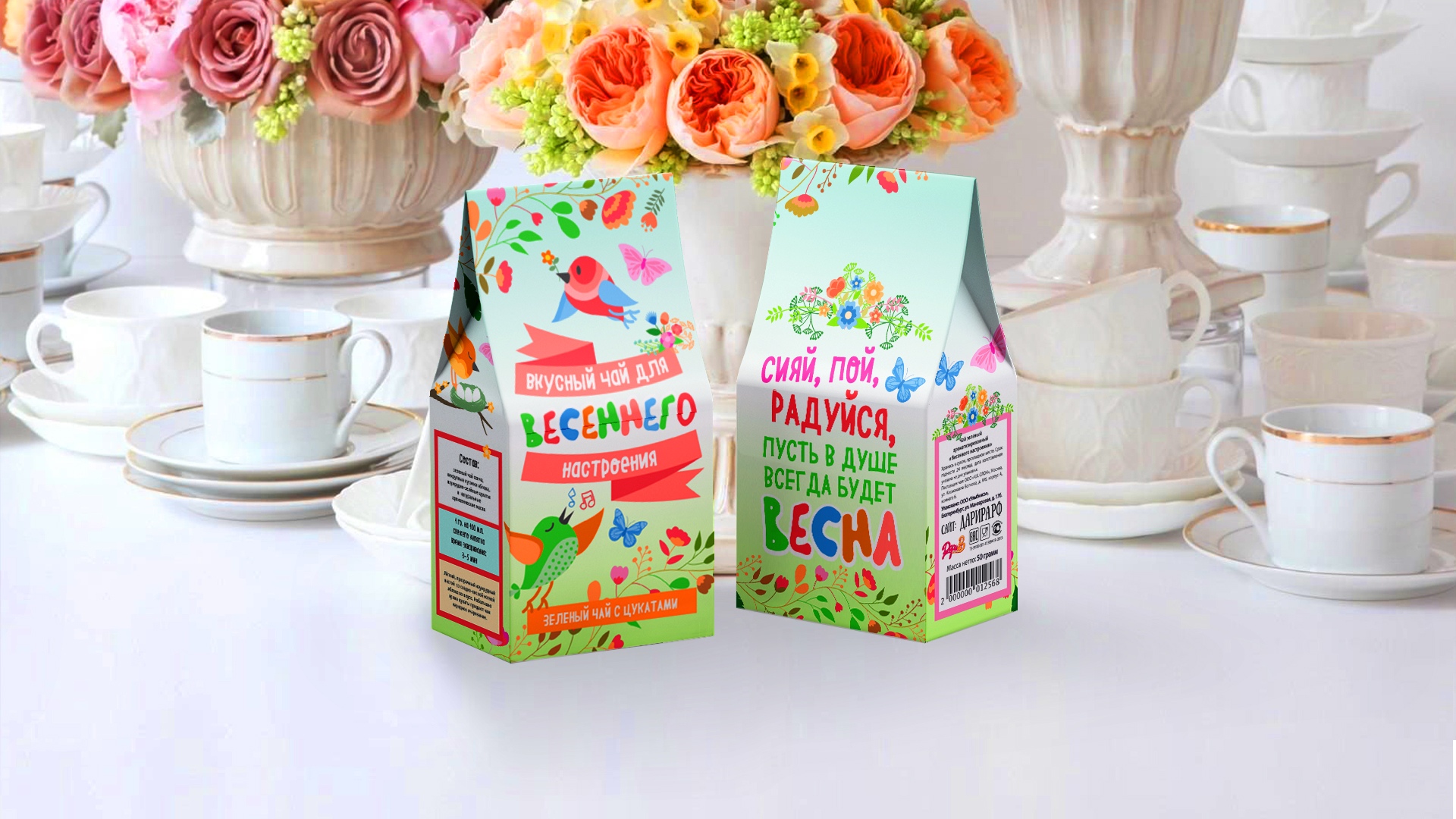 Этот чай принесет весеннее настроение и будет отличным подарком для любого человека. Аромат - глубокий, с затаённой пряной сладостью сушёного яблока. Небольшие яркие цукаты придают этому чаю нарядное очарование. Пожелание: "Cияй, пой, радуйся, пусть в душе