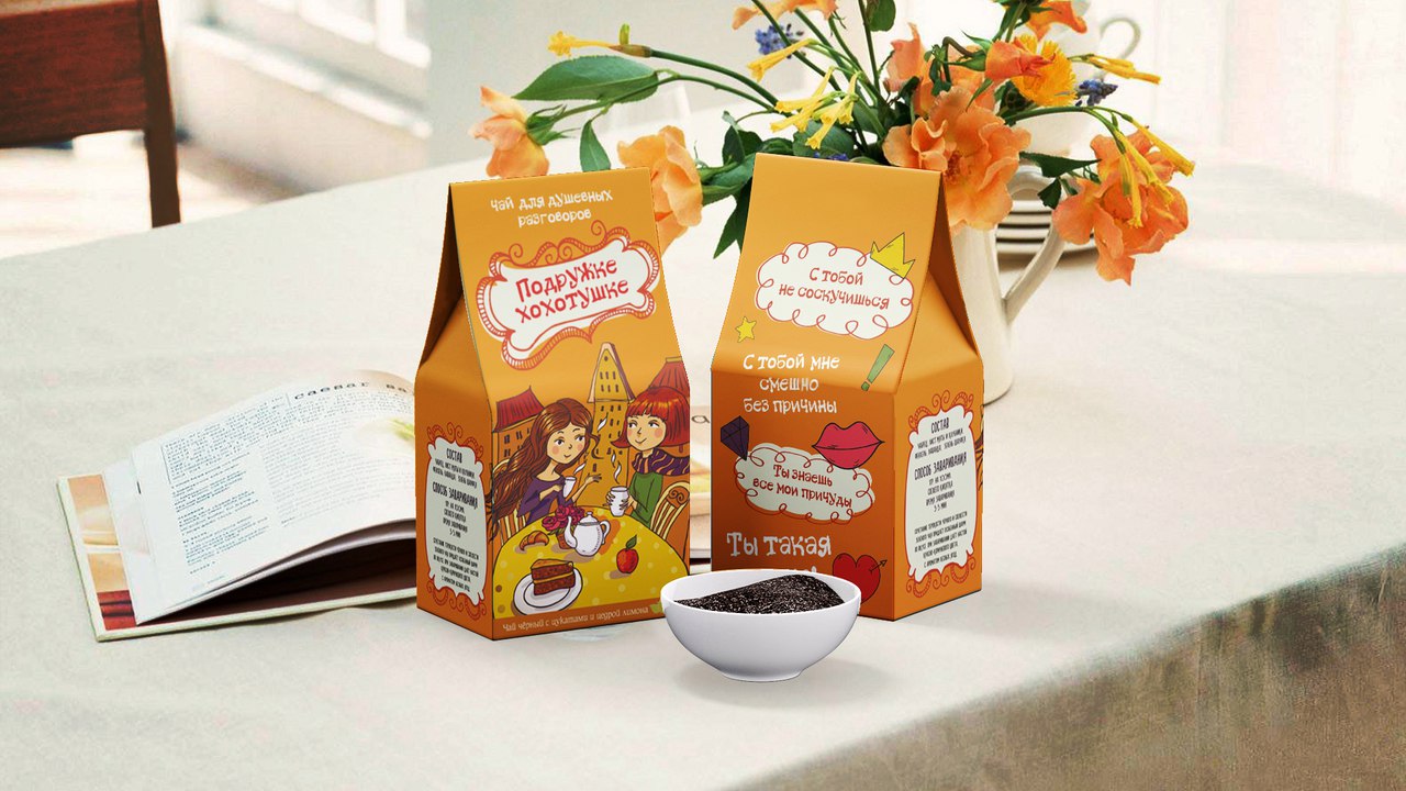 Этот чай напомнит, как хорошо быть подругами. Его можно дарить просто так и по любому поводу. Аромат чая сладкий, ягодный, вкус изысканный. Надписи на обороте: "с тобой не соскучишься", "ты такая - одна" и др.