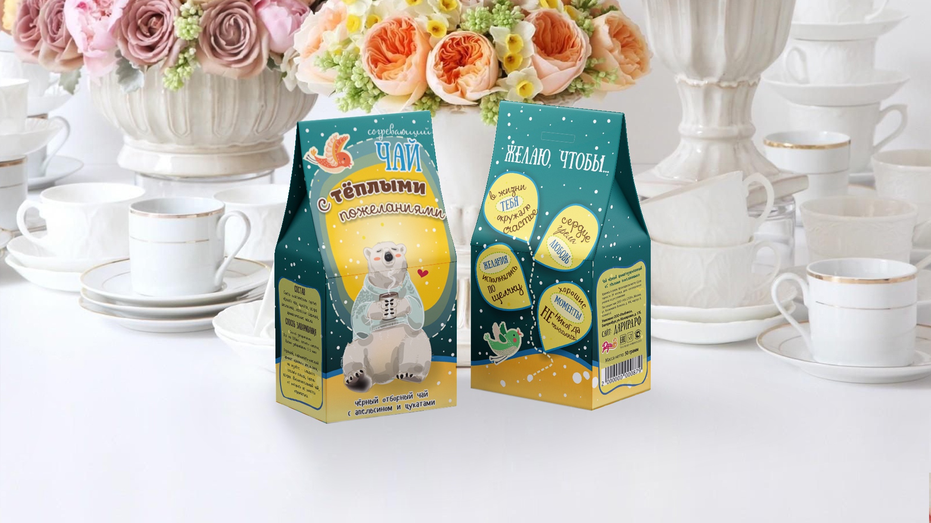 Этот чай дарит заботу и уют. Приятный подарок для любого человека. Восхитительный вкус и аромат, от которого не хочется отрываться. Пожелание на обороте: <<Желаю, чтобы: в жизни тебя окружало счастье, сердце грела любовь и т.д..>>