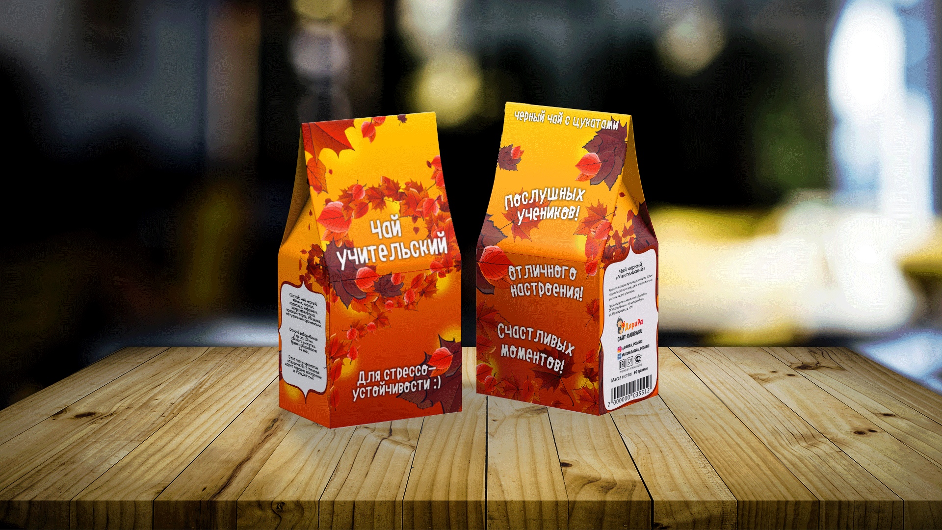 Черный чай с апельсином. Учительский. Для стрессоустойчивости :) На обороте пожелания: "послушных учеников", "отличного настроения", "счастливых моментов".