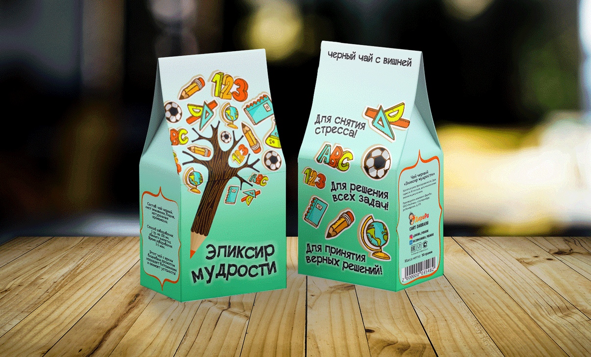 Черный чай с вишней. Этот чай снимает усталость и дарит ясный ум :) Прекрасный подарок к началу учебного года или к сессии. На обороте: "для снятия стресса", "для решения трудных задач", "для принятия верных решений".