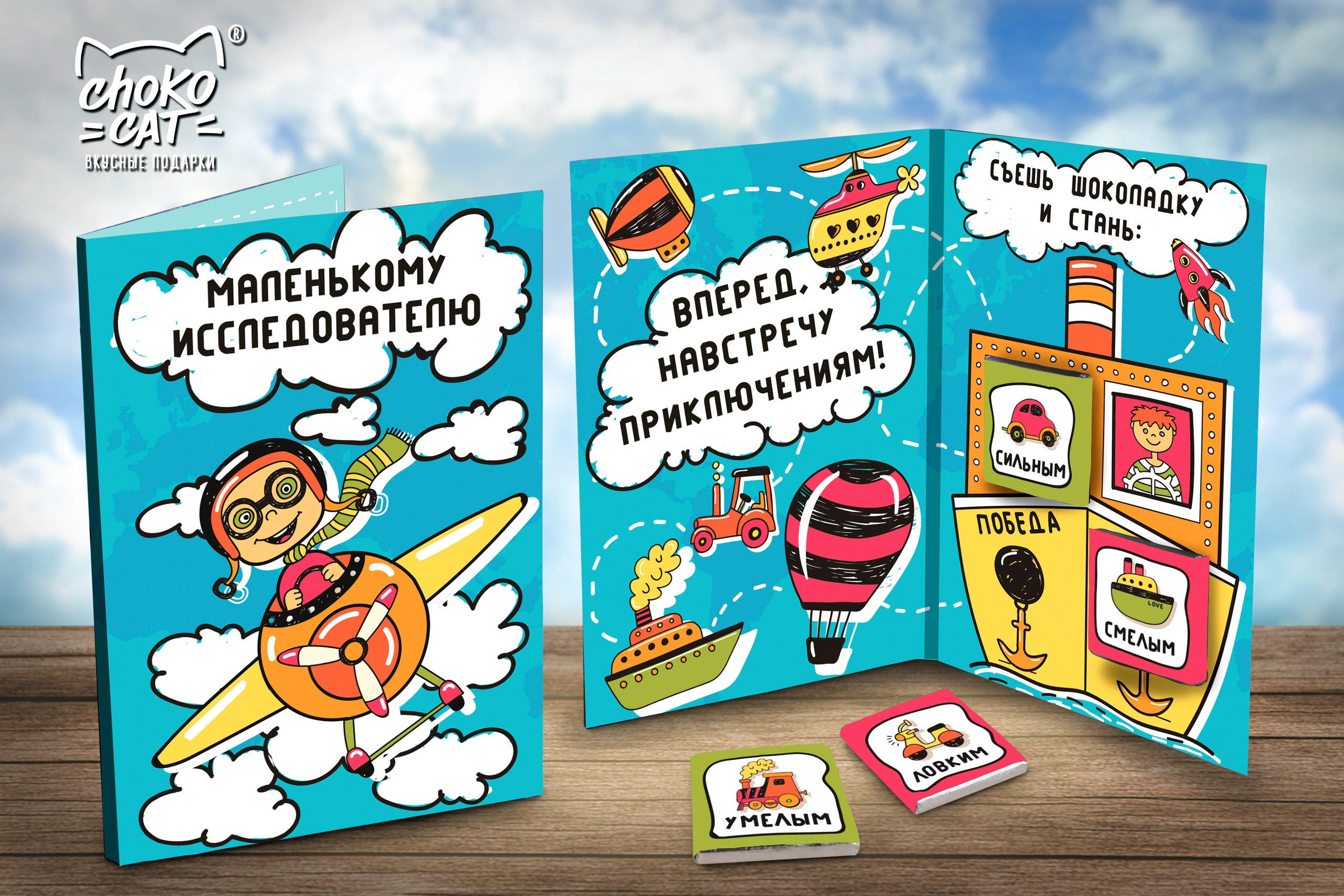 Яркие и современные, веселые и стильные, милые и нежные - все это открытки Chokocat! Каждая отличается оригинальностью и вниманием к деталям. Внутри добрые пожелания и 4 молочных шоколадки по 5 грамм с иллюстрациями на этикетках. 18 видов дизайна, 36,8% какао.